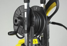 De hogedrukreiniger heeft een spuit en 5 meter slang op haspel.